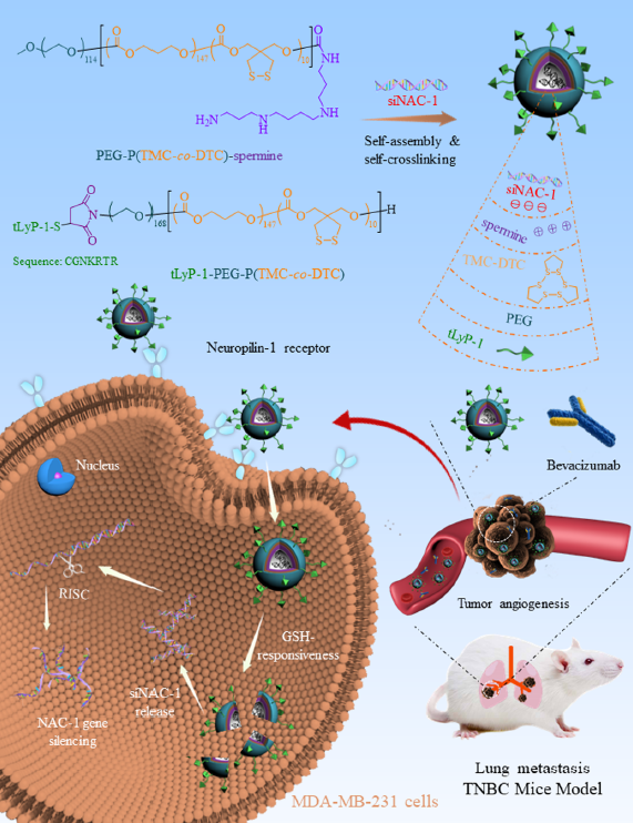 H.Y. Wang, X.H. Zhang, Y. Zhang*, R. Cheng*, J.D. Yuan, and Z.Y. Zhong*, Systemic Delivery of NAC-1 siRNA by Neuropilin-Targeted Polymersomes Sensitizes Antiangiogenic Therapy of Metastatic Triple Negative Breast Cancer, Biomacromolecules 2020, 21, 5119-5127.
